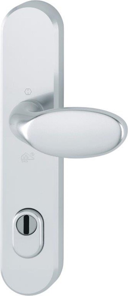 HOPPE afgerond inbraakwerend knopschild van massief aluminium, met rondom facet, conform NEN 5089, SKG®***- keurmerk. Buitenzijde met cilinder-kerntrekbeveiliging, Knopkruk vast/draaibaar gemonteerd, Buitenzijde voorzien van stalen nokken. Toepasbaar met 1400/3214 of 1138/3214 of 138L/3214.